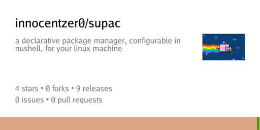 arrow-up116arrow-down1external-linkSupac - a declarative package manager for Linux scriptable in nushellplus-squarecodeberg.orginnocentz3r0@programming.devEnglish · 5 days agomessage-square1linkfedilink