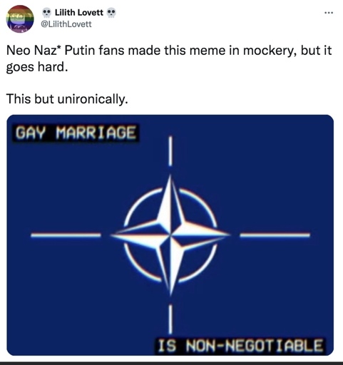 Sine_Fine_Belli@lemmy.world to NonCredibleDefense@sh.itjust.worksEnglish · edit-22 months agoLGBTQ+ RIGHTS ARE NON-NEGOTIABLElemmy.worldimagemessage-square68linkfedilinkarrow-up1764arrow-down117