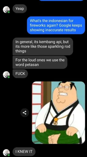 The cartoon character is Peter Griffin from Family Guy, who is quite prominent in meme culture, and in the picture they are wearing a martial arts outfit and doing something martial arts related and seem to be in a Japanese-styled room judging by that window