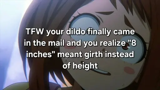 transcription: tfw your dildo finally came in the mail and you realize “8 inches” meant girth instead of height.