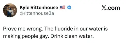 The other commenter caught my intent to ridicule Rittenhouse by his own standards: His community fluoridates the water, so either drinking the water turned him gay, or, if it didn’t, he’s full of shit.