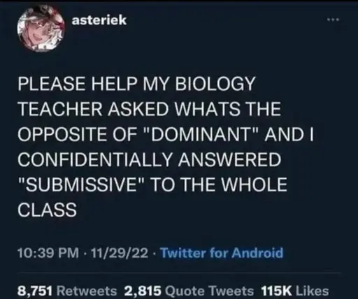 I mean it could absolutely be submissive in behavioral but I think we can assume it wasn’t