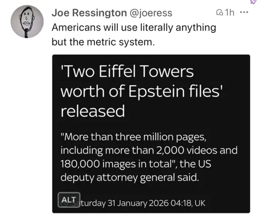 minus-squareQuantumSparkles@sh.itjust.workslinkfedilinkEnglisharrow-up24·28 days ago“…they’ve hit the second Eiffel Tower”