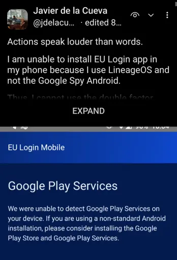 arrow-up1737arrow-down1imageEU Login App Requires Google Playlemmy.blahaj.zonenot_IO@lemmy.blahaj.zone to Europe@feddit.orgEnglish · 6 days agomessage-square66linkfedilinkfile-text