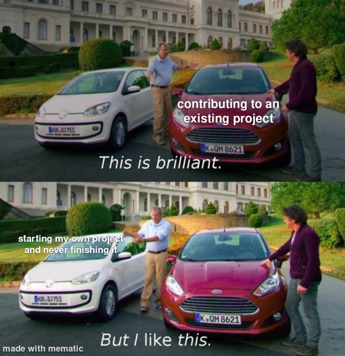 But when I’m feeling an itch to make something, then contributing can’t help because I don’t wanna go search for similar projects. I just wanna build.