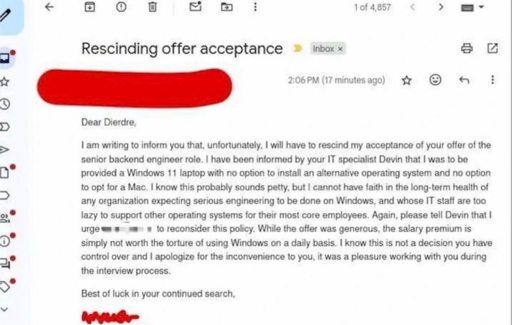 Man, imagine being in a financial situation where you could afford to turn down a job just because of if the OS you’d be using