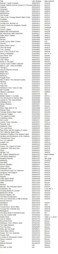Gravity Falls is one of the greatest of all time! We finished it last year, but he still likes to watch reruns now and again. It should be on the list, but it’s organised by late date watched, so hard to read.