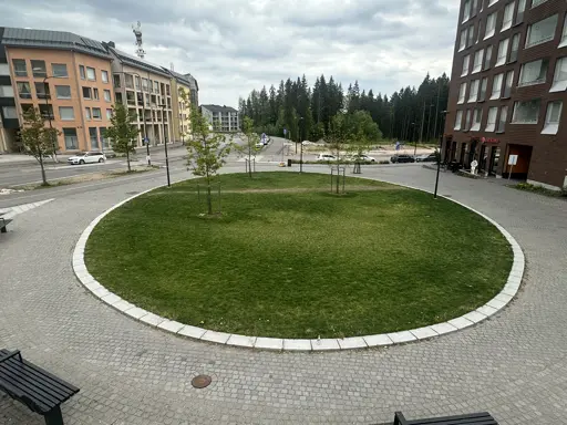 People walking between the bus stop (outside the picture) and the building (on the right) don’t like taking the long route around this huge green circle. It was pretty obvious that this would happen sooner or later.