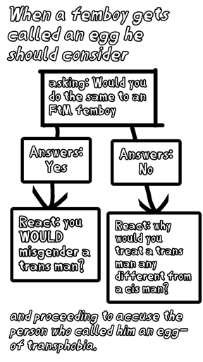 Real talk: Calling people eggs is a violation of the egg prime directive, and is considered invalidating as you are trying to say that a person is not the gender they identify as, that their identity is invalid. Don’t call people eggs, like ever, it’s extremely uncool.